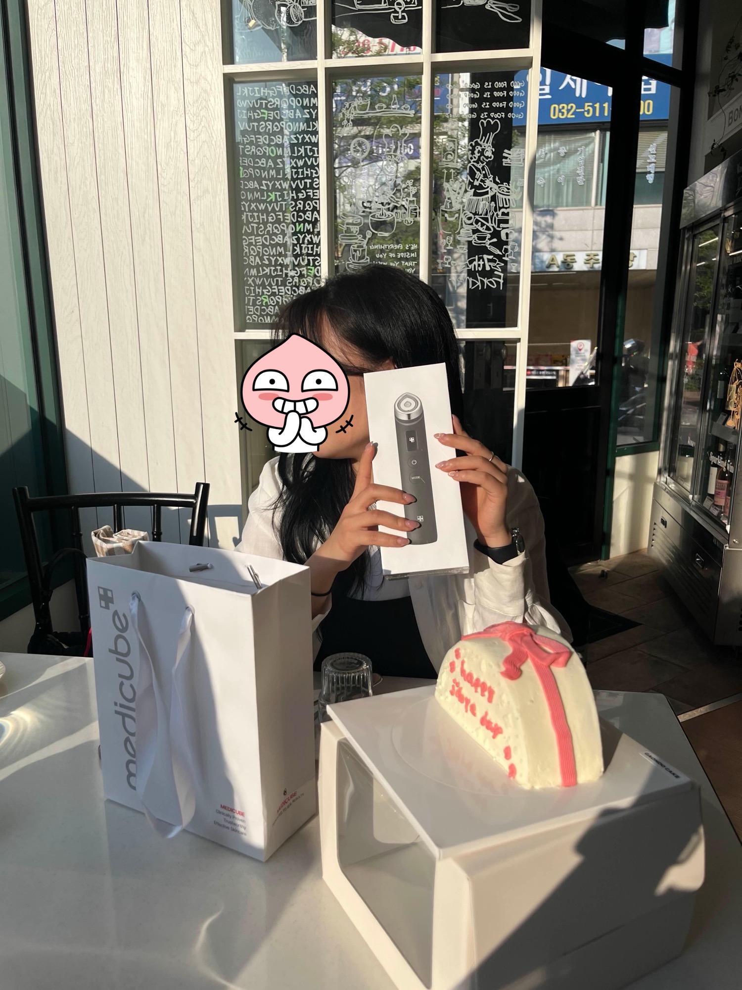 친구들이 직접 준비해준 깜짝 케이크와 함께 선물로 건넨 메디큐브 부스터 프로🎁